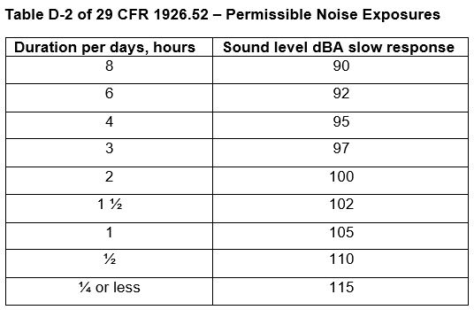 4.1 Where employees may be potentially exposed to time-weighted average noise levels more than chart D-2 (below), OSHA has determined that an effective hearing conservation program shall be implemented and shall consist of the following elements: