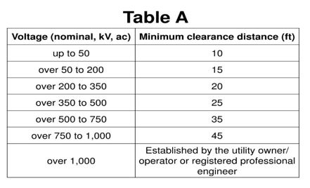 Mechanical equipment is operated so the minimum approach distances of Table R-6 through Table R-10 of 29CFR 1910.269, are maintained.